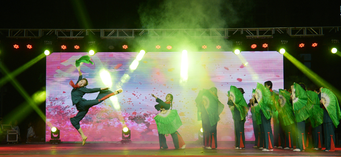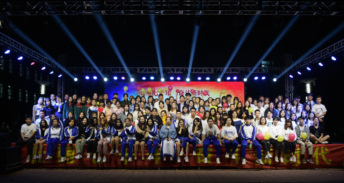 晚会上,师生们精心准备了舞蹈、小品、歌曲和诗朗诵等精彩的节目。大家用歌声来表达对祖国的爱意、用舞蹈来诠释祖国的繁荣富强。诗朗诵《建国七十载,我与祖国同在》点燃了现场的每一位同学的爱国热情,大家同唱《歌唱祖国》,将晚会推向高潮。