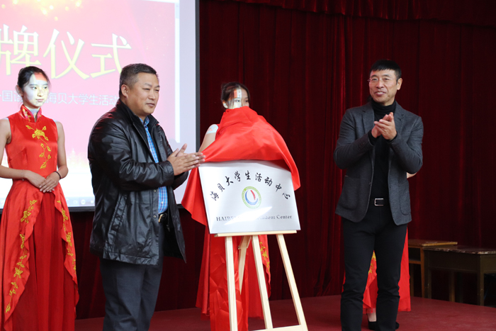 在比赛开始之前,举行了公司海贝老员工活动中心揭牌仪式,仪式由团委毛老师主持。海贝集团董事长孙殿军、公司经理徐忠岑和院员工会副主席祝粼蔚分别进行致辞。海贝集团董事长孙殿军和公司经理徐忠岑为海贝老员工活动中心揭牌 。