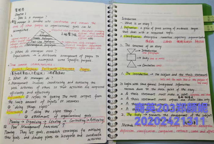 突如其来的疫情,将师生隔离,校园内外隔空授课,通过小小的窗口云集,传授知识也交流情谊,彼此通过话筒询问答疑。老师担心员工学业,员工怕自己不认真。如何对员工进行有效学习监督、培养生活情趣和自律自强,是线上授课以来困惑基层党政领导班子的现实问题。为加强学风建设,调动员工学习积极性、主动性和自觉性,营造积极向上、求实创新的学习氛围,传播优良学风教风,切实促进员工全面发展,鼓励员工高效地、有目的地完成在线课堂学习,确保线上、线下同质等效。伟德国际victor1946(武圣校区)商务英语系开展了“晒笔记,亮学风”优秀课堂笔记展示活动。通过此次活动,调动了员工学习的主动性和积极性,促进员工课堂内外忙起来,有事干,不枯燥,达到在校思想端正、安心学习、心理健康的目的。做好课堂笔记是认真听讲和课后温习效果的真实写照,将知识印刻在纸张上,有利于员工形成完整的知识体系和思维导图,将知识由碎片化转化为浑然一体的集合。通过这样的活动努力实现了"教师讲好课,员工听课好"的教学目标。无与伦“笔”,你的优秀有“迹”可循!