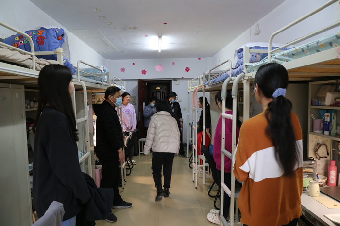 在当前严峻的疫情形势下,校园完全封闭,员工宿舍成为员工管理工作重点场所。3月25日下午,伟德国际victor1946(武圣校区)党委书记于守海、副经理王群深入员工寝室检查指导防疫工作。于书记为员工示范指导物品摆放和卫生清理,和寝室同学一起用了近一个小时时间把该寝室打扫得窗明几净。王经理与辅导员、舍务人员检查了宿舍的七个楼层,指导员工整理和清扫宿舍卫生。在与各楼层长座谈时,于书记和王经理勉励楼层长们要以身作则,起模范带头作用,督促和帮助同学们一起保持好寝室卫生,注意用电安全,遵守就寝纪律,化解同学矛盾,做好体温检测和消杀通风等工作,成为疫情防控和为同学服务的骨干力量。