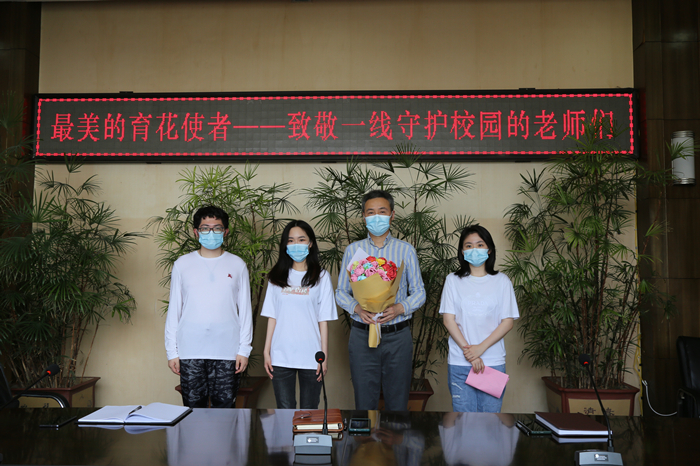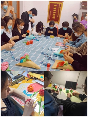员工代表为老师献上亲手制作的玫瑰花