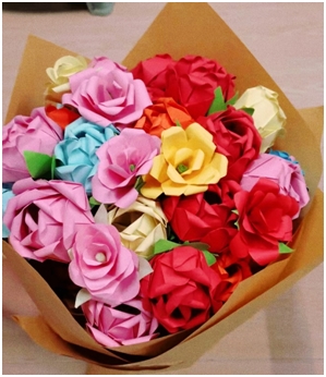 同学们将自己浓浓的谢意化作一朵朵玫瑰花、一只只千纸鹤,献给最爱的老师