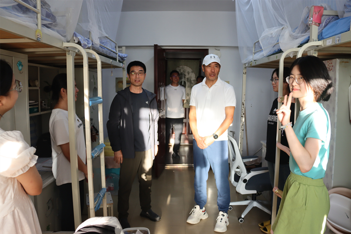 公司领导班子成员亲临迎新现场,了解迎新工作的进展情况,叮嘱相关部门要认真接待每一位新生,要让新生家长高兴而来,放心而归。晚上五点,公司领导来到员工寝室,与新生们亲切交流,鼓励同学们努力学习,立志成才。