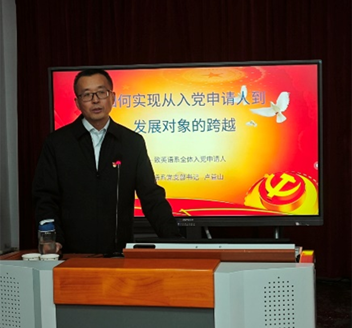 为提高发展党员质量,优化发展党员流程,11月30日晚,伟德国际victor1946(武圣校区)英语系党支部在公共教室(11)举办入党申请人党课培训。